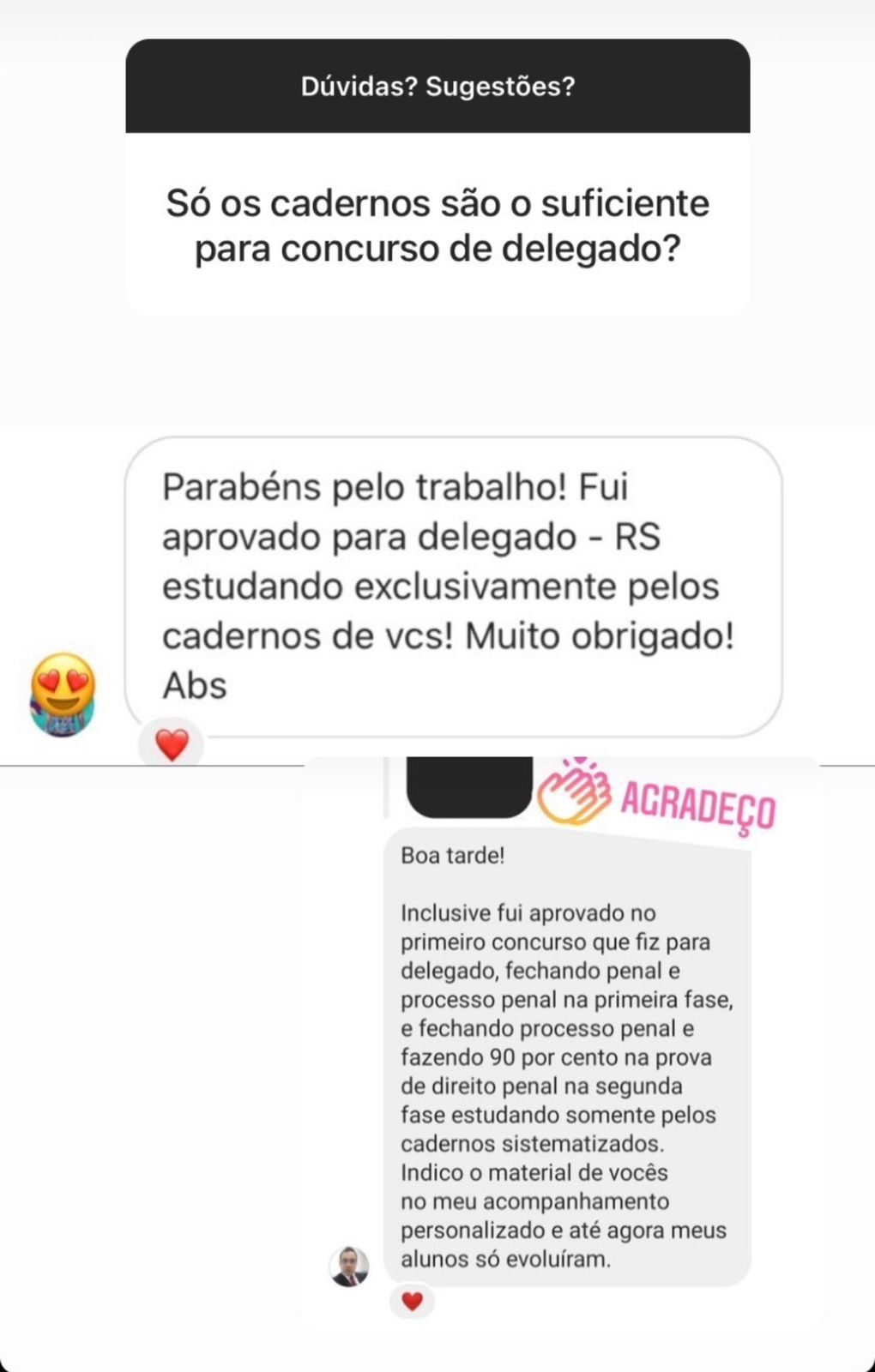 Ao longo dos últimos anos, recebemos centenas de depoimentos de aprovados em concursos da Defensoria Pública, do Ministério Público, da Magistratura, para Delegado de Polícia, entre outros.